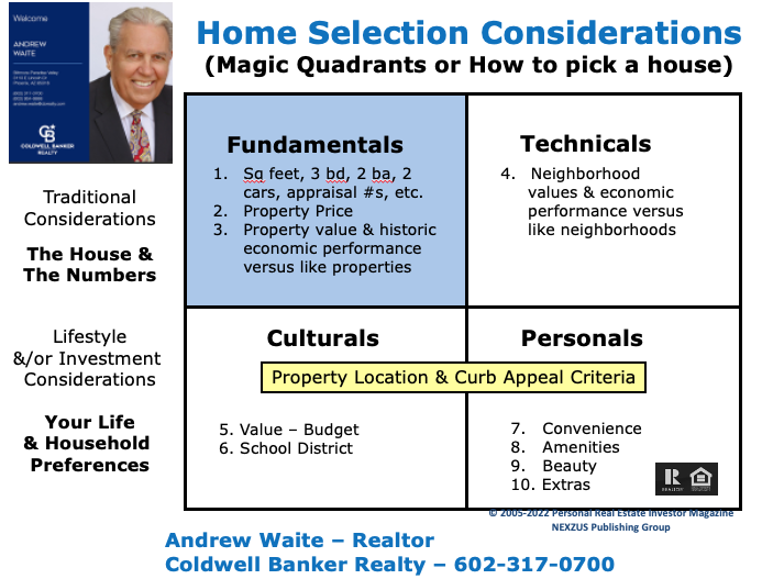 Using the lessons of securities analysis or looking at the metrics behind wise stock picking, similar rules can be used to find and buy a home to get life style and a predictable investment return. Think buying an appropriate home as “your castle” not as a commodity. This is an argument for using the fundamantal, technical, cultural and personal preferences to match your needs to a home and do so in a manner that is likely to be most desirable for the next buyer.